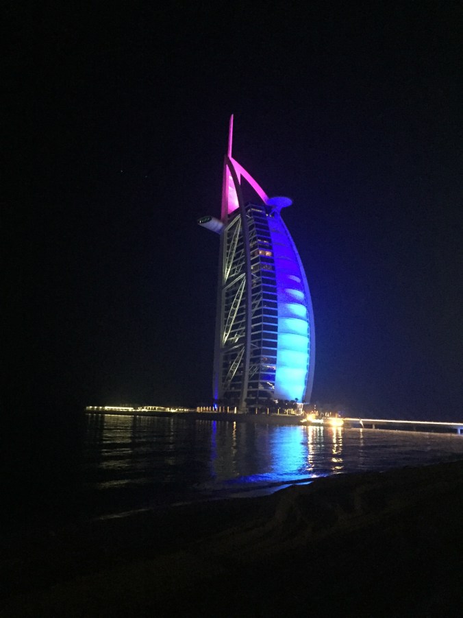 Had some dinner and wandered around the area where we are staying. Saw the Burj Al Arab Jumeriah (a famous sail shaped luxury hotel) …